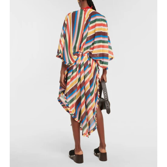 Stand out in style with this maxi dress from Ganni. Finished with ruffle trims and a self-tie waist belt, it’s made from semi-sheer, vibrantly striped, dotted chiffon fabric – the perfect breezy silhouette.