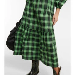 This maxi dress from Ganni is made from cotton-blend seersucker with a smocked bodice and puffed mid-length sleeves with elastic edges. The checked design has a square neckline and a fluted hem that adds volume.