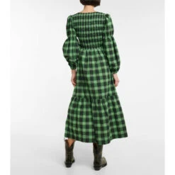 This dress from Ganni features an ornate beaded panel, cutout detailing and an open-back design. It’s made from woven hemp and falls to a midi hem.